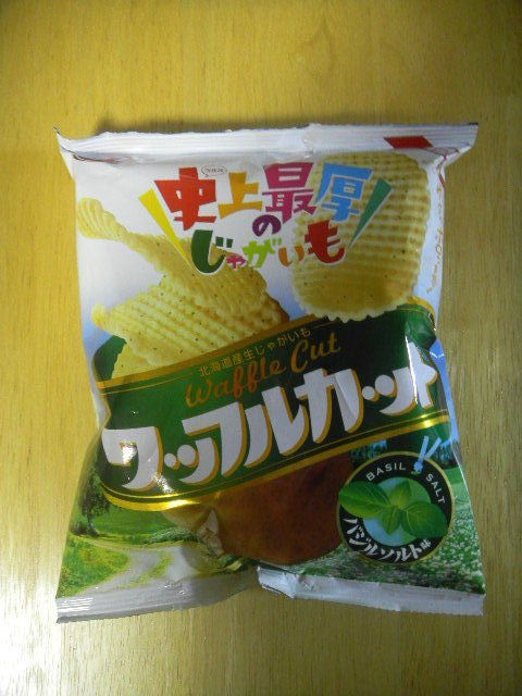 バジル(basil)塩味の、ポテトチップス(potato chips)。
