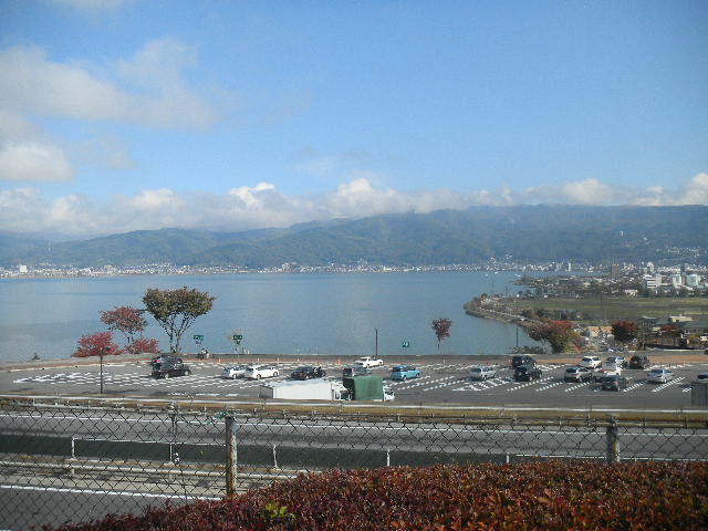 高速道路(motorway)の、諏訪(suwa)湖S.A.(rest area)から見た、諏訪(suwa)湖。諏訪(suwa)湖は、長野(nagano)県の中南部に有る大きな湖です。諏訪(suwa)湖周辺は、温泉が豊富で、規模の大きな温泉保養地等となっています。私の別荘の有るエリア(area)(長野(nagano)県の中南部area)は、大きく、諏訪(suwa)湖周辺の盆地エリア(area)と、高原エリア(area)に分かれますが(私の別荘は、高原エリア(area)の方に有ります)、諏訪(suwa)湖は、諏訪(suwa)湖周辺の盆地エリア(area)の中心に位置する湖です。写真右端の部分は、諏訪(suwa)市の、市街地です。諏訪(suwa)市は、人口5万人程の小都市ですが、諏訪(suwa)湖周辺の盆地エリア(area)だけでなく、(高原エリア(area)も含む)長野(nagano)県の中南部areaの中心都市となっています。