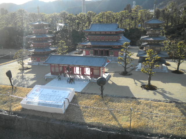 薬師(yakushi)寺の、模型。薬師(yakushi)寺は、7世紀後期に創建された、日本の、仏教の寺です。現在の、薬師(yakushi)寺の東塔(上の模型で言えば、右側の塔)は、8世紀の初期に建てられた物です。