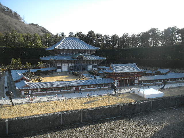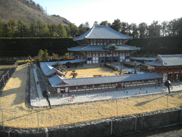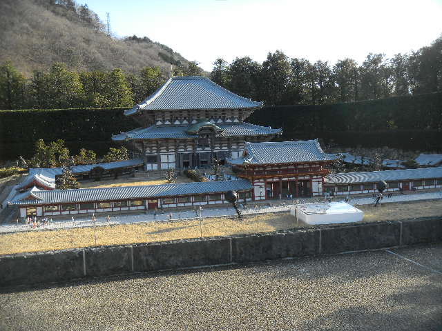 写真以下6枚。東大(todai)寺の、大仏殿(daibutsuden)の模型。東大(todai)寺は、8世紀前半に創建された、日本の、仏教の寺です。現在の、東大(todai)寺の、大仏殿(daibutsuden)は、18世紀初めに建てられた物で、おそらく、現存する、18世紀以前に建てられた木造建築物の中では、世界最大の物であると共に、現存する、1930年代以前に建てられた木造建築物の中では、東本願(higashi hongan)寺(1602年に創建された、日本の仏教の寺)の、現在の御影堂(1895年に建てられた)と共に、世界最大級の物となっています(第二次世界大戦中の、1942年に、東大(todai)寺の、大仏殿(daibutsuden)と、東本願(higashi hongan)寺の、御影堂を超える規模の、アメリカ軍(アメリカ海軍の、飛行船(airship)部隊)の、木造の、巨大な、飛行船(airship)の格納庫(飛行船を9隻収納する事が可能)が、アメリカの、オレゴン(Oregon)州に建てられました(現存しており、私は、訪れた事がありませんが、現在は、飛行機に関する博物館の建物として使われている様です)。ちなみに、第二次世界大戦中は、アメリカの様な、物資が、非常に豊富な、資源大国においても、金属不足の問題は、存在していました)。