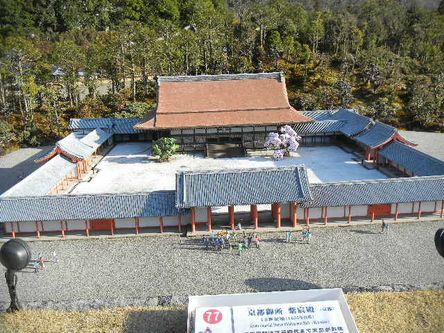 사진 이하 2매.쿄토 고세(kyoto gosyo)(일본의, 천황가의, 쿄토에 있어서의, 거주지(궁전).14 세기부터, 1869년까지, 일본의, 역대의, 천황이 살고 있었다)의, 현재의, 시신전(shishinden)(공적인 행사등을 실시하는 건물)의 모형.쿄토 고세(kyoto gosyo)의, 현재의, 시신전(shishinden)(공적인 행사등을 실시하는 건물)는, 1855년에 지어진 것입니다.