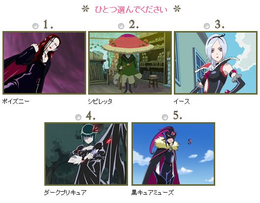 プリキュアガーデン「おしえてプリキュア」の投票より、