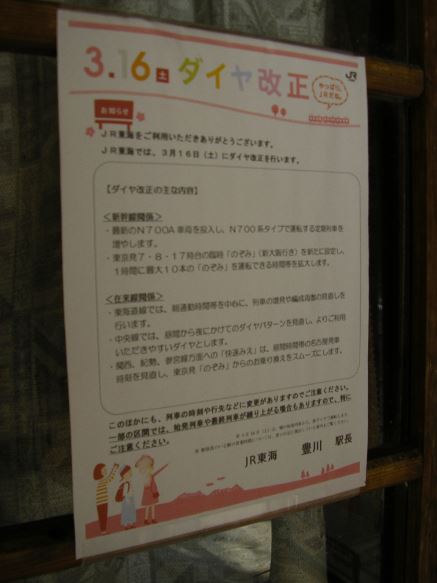 秘境駅にもちゃんとダイヤ改正の知らせが貼りだされています^^