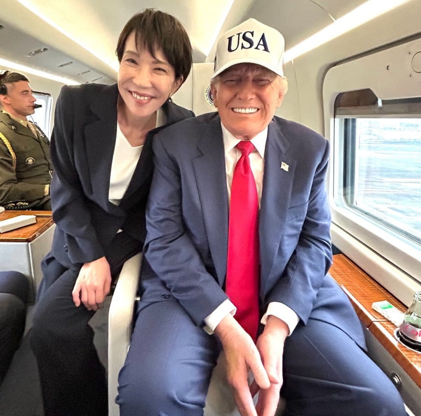 타카이치 수상은 28일, X( 구Twitter)에 「 나의 훌륭한 동지인 트럼프 대통령과 함께!」라고 하는 기입과 함께, 마린 원(미 대통령 전용 헬기) 내에서 트럼프 대통령과 웃으면서 촬영한 사진을 게재했다.
