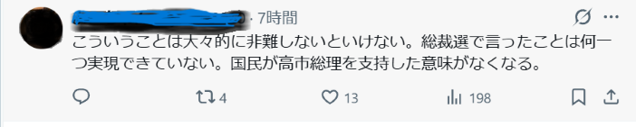 타카이치 내각의 지지율의 인하도 멈추지 않게 되었다.